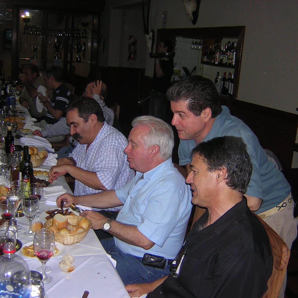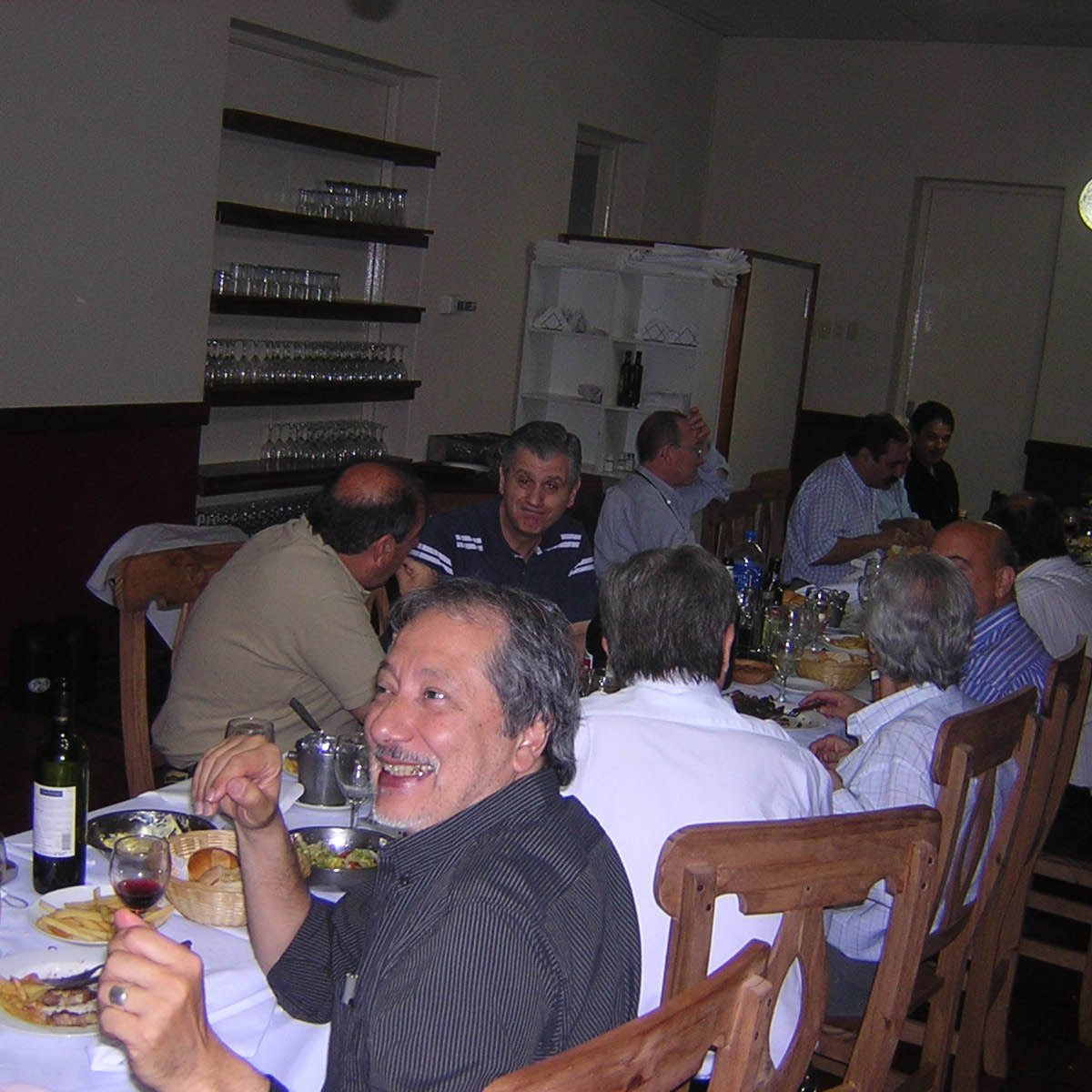 El festejo del Bachillerato fue celebrado con la tradicional cena festiva en una cantina de la Boca. Lamentablemente la celebración fue interrumpida por los propietarios del local luego de una “charla” no muy amable entre los bachilleres (nosotros) y los peritos mercantiles que celebraban junto a nosotros, nos sacaron a patadas no sin antes evaluar el inventario de platos y copas de vino que tenian que reponer… .Deambulamos “alegremente” por las callecitas del barrio hasta conseguir subir a un maldito colectivo en dirección a Flores. Debido a la “alegria” de algunos de nosotros la farra continuó durante el viaje. Alguna pasajera se ofuscó debido a lo que alguno dijo o quizás “hizo” o tal vez no???. Resultado: El conductor paró el colectivo a la puerta de la mencionada comisaria e hicieron bajar a los “implicados”en el supuesto acontecimiento. En acto de solidaridad bajamos todos y bueno, pasó lo que tenia que pasar…