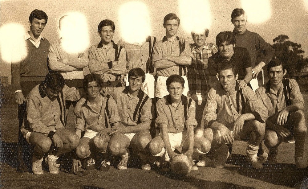 La foto fue sacada el dia de la final contra uno de los quintos años (no recuerdo cual) que nos ganó. Era un campeonato del colegio y quedamos segundos, nosotros estábamos en cuarto año, era 1969. Se jugaba (y de alli es la foto) en unas canchas que estaban en unos terrenos del ferrocarril Sarmiento sobre la calle J.B.Justo (exactamente donde ahora esta el Polideportivo de Velez Sarsfield). En esa época les decian las “canchas de Francisquito”. Alli se jugó todo el torneo los sábados por la mañana. Los jugadores de la foto son, de izquierda a derecha y de arriba hacia abajo: Palacios, el segundo que no se ve es Ibarra, Terés, el tecero que no se aprecia es Salmon Cadenau, Gerónimo, Ferrer (creo que no jugaba solo acompañaba), y Chmielak; Agachados: Avanzi, Palma, Perez, Escobal, Mundo y Bellani Es todo lo que me acuerdo un abrazo y gracias por sostener esto