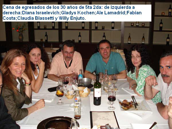 De Izq. a Derecha: Claudia Blasseti (5º 2º 77) Gladys Kochen (5º 2º 77) Marta Aleso (5º 3º 77) Roxana Bellosi (5º 6º 77) Silvia Chamorro (5º 3º 77) y Diana Israelevich (5º 2º 77)