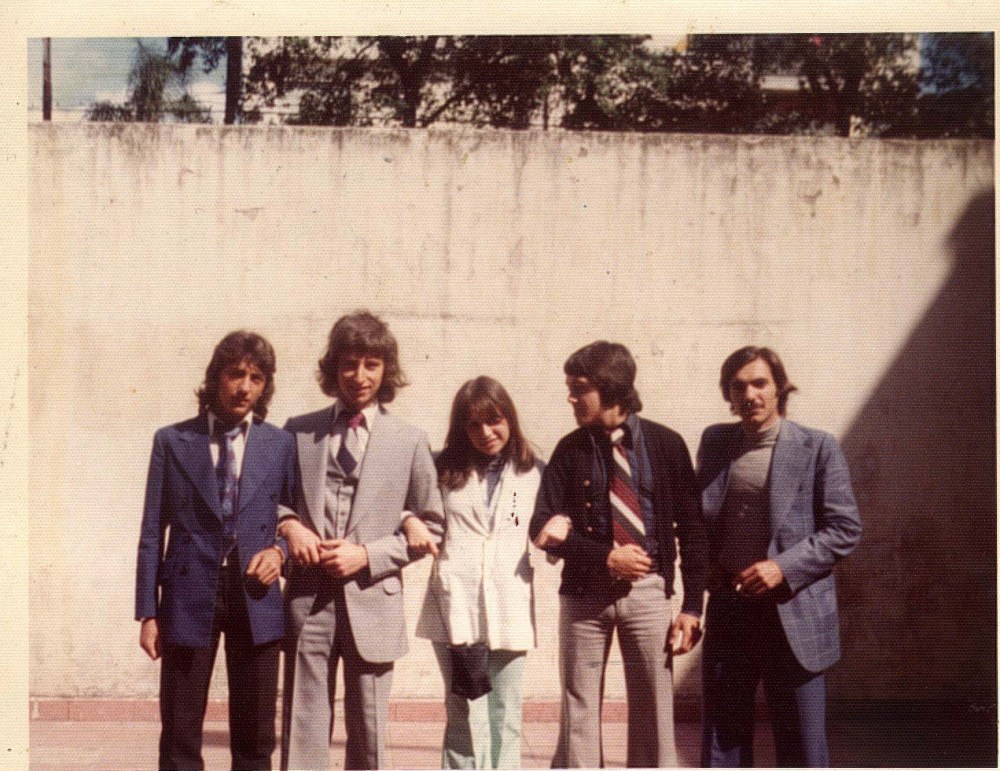 “…Aunque me fuercen yo nunca voy a decir que todo tiempo por pasado fue mejor, mañana es mejor…” “Cantata sobre los puentes amarillos” Luis Alberto Spineta.De izquierda a derecha: Miguel Damato, Adrián Andreatta y Raúl Agranatti (5º 4º 75)