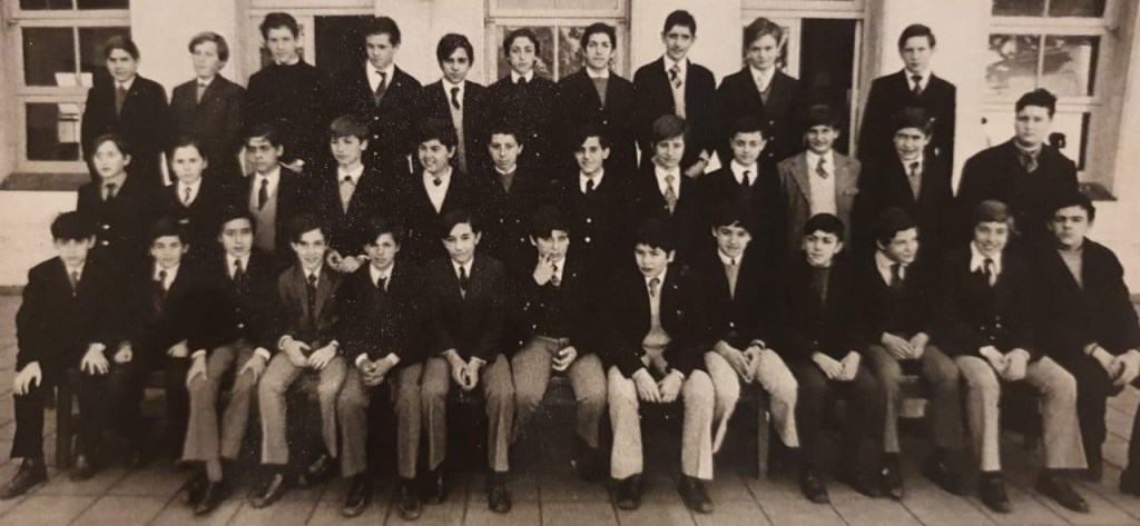 Arriba de Izq a derecha, : Eduardo Boniadian, Carlos Mandarín, Gabriel Santos, Rubén Díaz, Pedro Chidichimo, Ríos, Marcelo Aversa, Raúl Agranatti, Gabriel Pinto (fue de colado) Miguel Damato, Eduardo del Aguila, Silvia Garda (preceptora) Eduardo Larrandart (preceptor)
