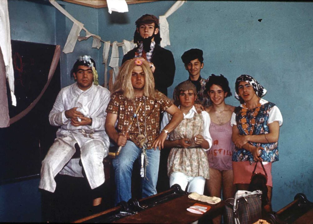 Al otro día de la fiesta, la profesora Ribot (Larry, entre nosotros, porque era renga y derrapaba, como un corredor de autos de la época: Larry) decidió sumar a su natural aversión a la simpatía por el prójimo, y a su aversión personal a mí, la ofensa a la Maternidad, a la Mujer, y a que se yo que más, resultando que me quería rajar del colegio.Demás está decir que el de la malla rosa, embarazado y con la inscripción ” falló la pastilla”, soy yo.