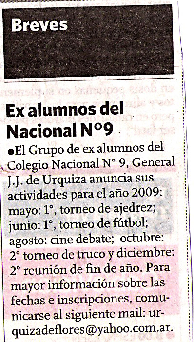 El programa de nuestras actividades del 2009 salió publicado en Clarín el Miércoles 29 de Mayo 2009.