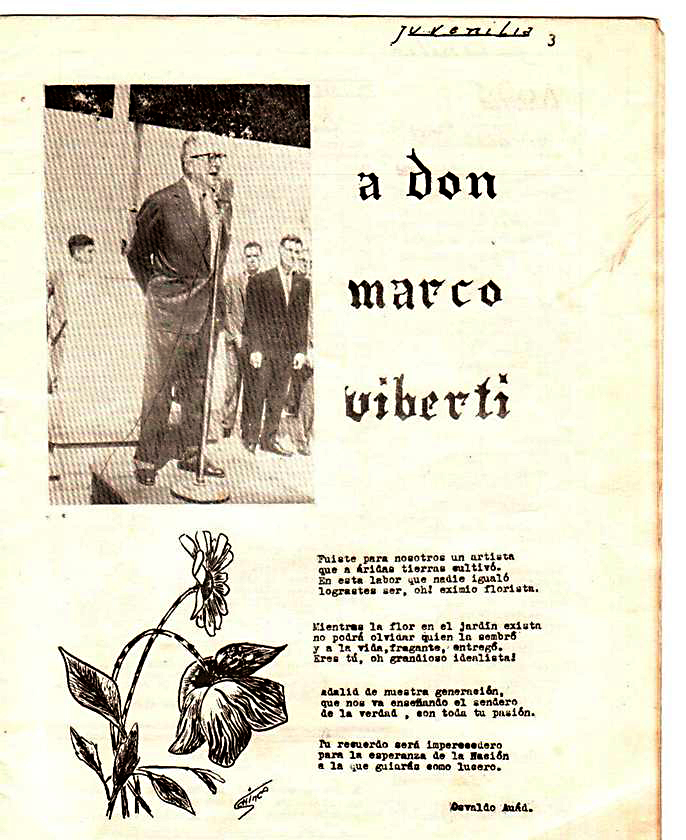 Epígrafe de la foto: Compañero en las tareas, en las desgracias, amigo; hermano en las confidencias, padre en los consejos. Y sobre todo, todo esto: TU ERES PARA NOSOTROS, UN MAESTRO.-