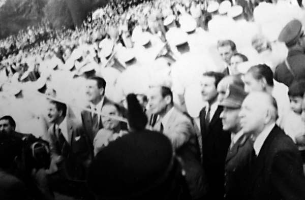 Esa mañana pude sacar un rollo entero de fotos…(no se rían, con esa cámara y con un rollo que se denominaba como “120” se podían sacar doce fotos de 6 x 6 cm). Obviamente hace cincuenta años el teleobjetivo en una cámara de uso personal era absolutamente desconocido, así que tuve que abrirme paso a veces a codazo limpio, para acercarme lo suficiente y poder tomar algunas de las foto que adjunto. La calidad no es de lo mejor, pero creo que tienen un cierto valor documental.